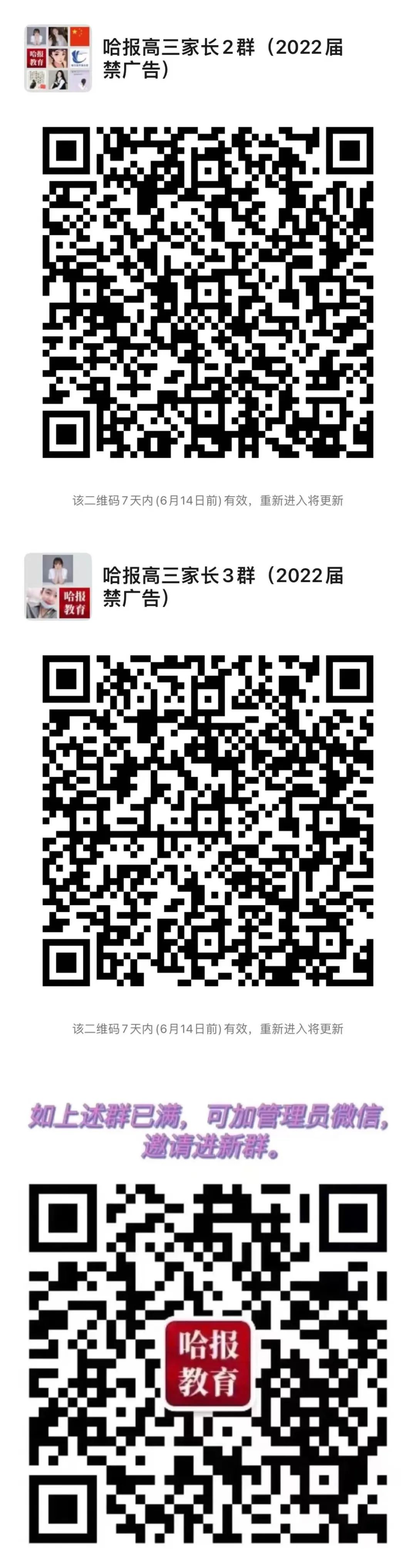 高考考生家长可扫描二维码加入“哈报家长群”获得权威政策资讯和志愿填报咨询
