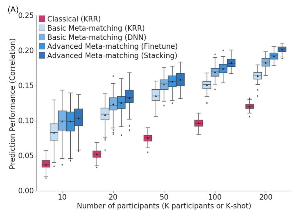 [3] He, T., An, L., Chen, P., Chen, J., Feng, J., Bzdok, D., ... & Yeo, B. T. (2022). Meta-matching as a simple framework to translate phenotypic predictive models from big to small data. Nature Neuroscience, 1-10.