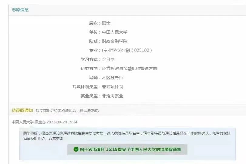 金融学院 李正萌 保研中国人民大学财政金融学院金融专硕