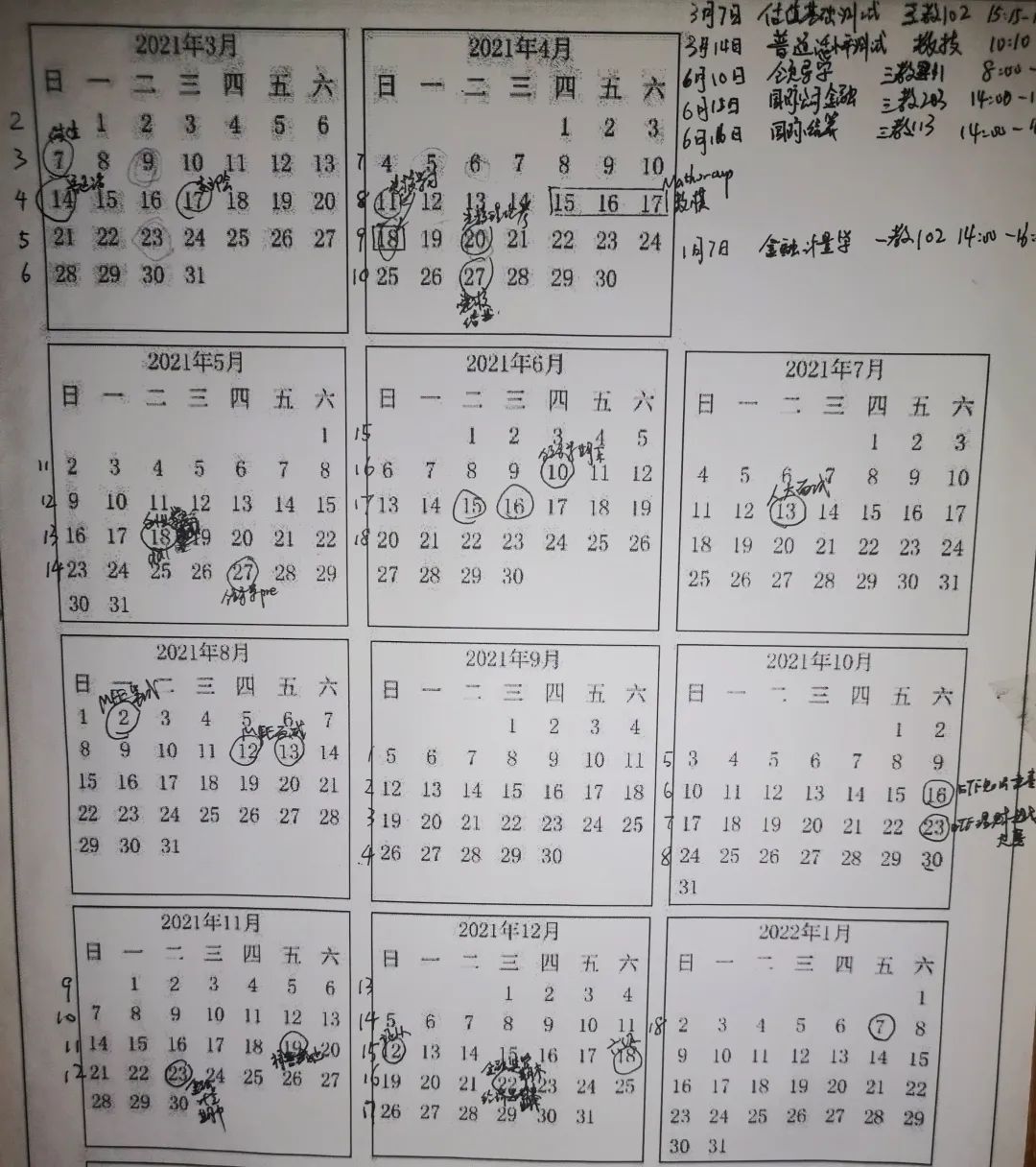 保研更是一场心态战,激烈的竞争中,他们也常常处在和别人比较后的焦虑中,用李一珂的话来说:“虽然通常说越努力越幸运,但是中间也可能有较长时间的等待。”当遇到困难时,他们四人也有不同的放松方式,但共同的特点都是暂时的抽离。李正萌的学习很有规划性,桌上的日历清楚标注每件事的起始日和结束日,但是也常常会在学习疲倦时骑车兜风,然后拍下一张张风景照发到寝室群中分享。“身上没有一个包袱,手里没有一张地图。”漫无目的地在上海游荡,有的只是新区域的探索,颇有些自由跳脱。