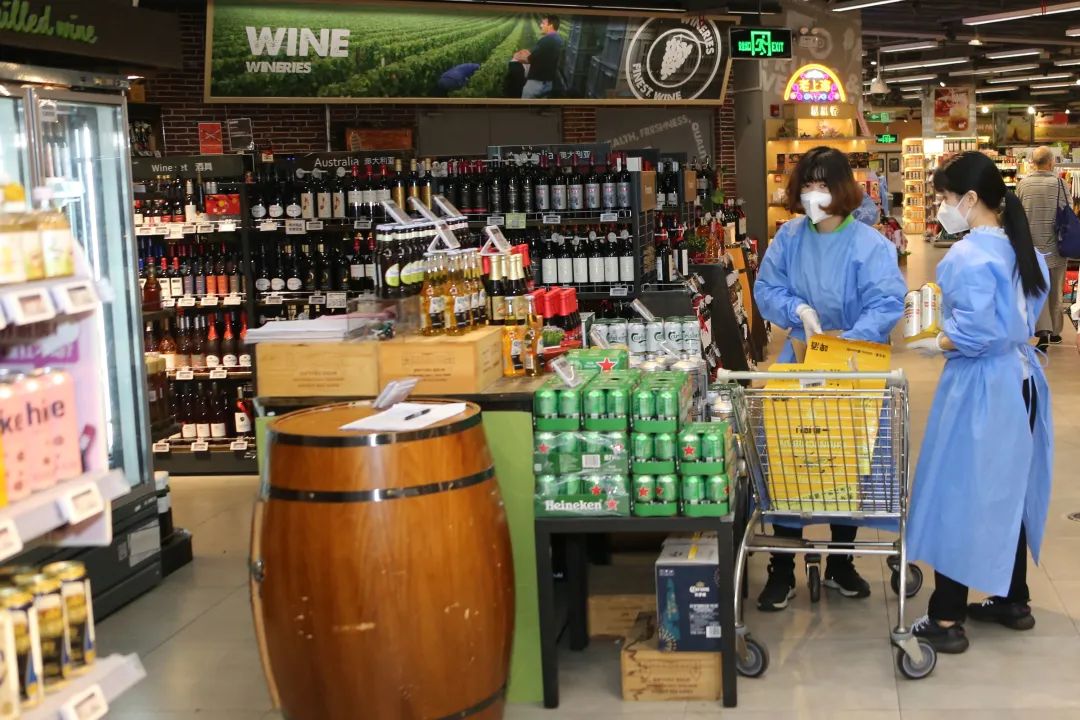 商超的恢复,让大家重拾线下“买买买”的快乐。在合生汇BLT超市内,用心的“巡场员”,贴心的“切配员”,细心的“收银员”,驻守各自岗位,为顾客创造健康安全的购物环境。记者发现,在进出口处、进口商品区等特殊区域贴心放置了免洗消毒液,时刻满足顾客的防疫需要。