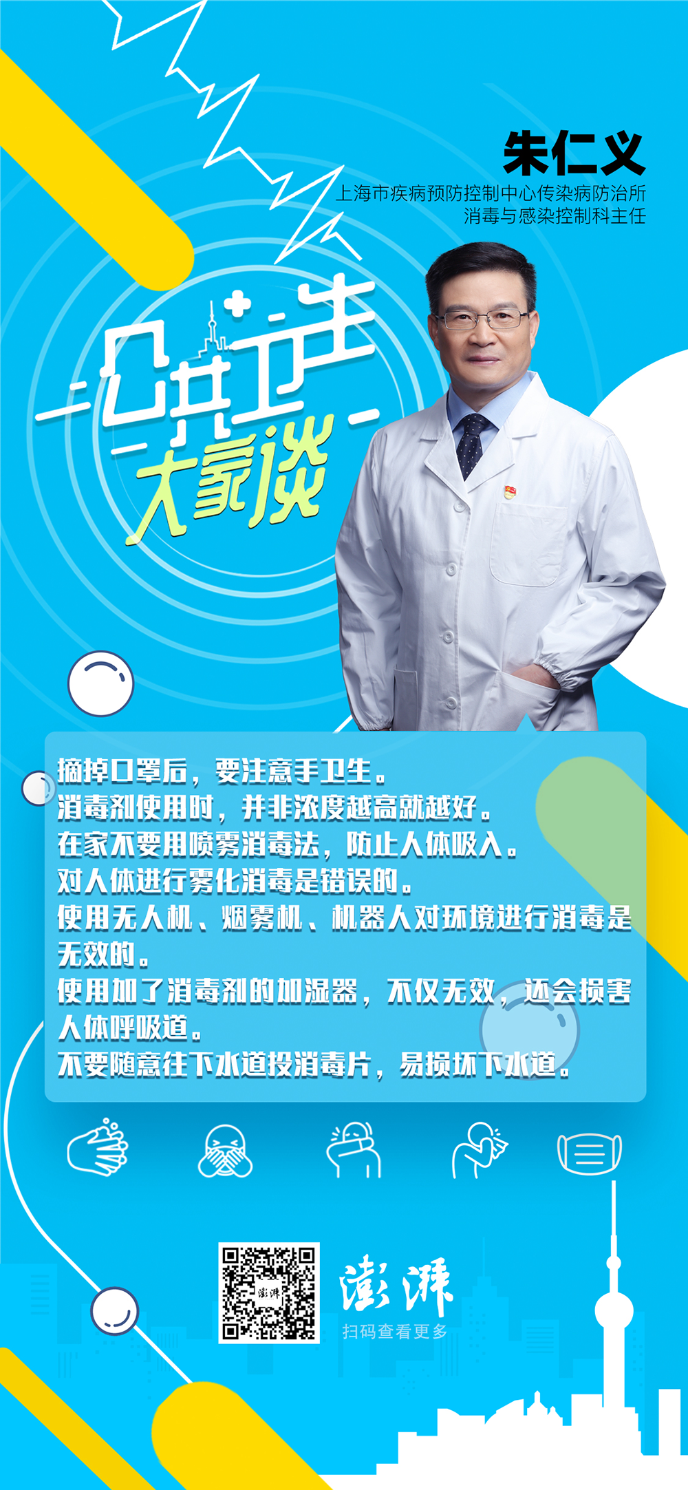 6月9日18:00,在“公共卫生大家谈”系列讲座第九期中,特邀上海市疾病预防控制中心传染病防治所消毒与感染控制科主任朱仁义,为大家科普如何科学规范地进行清洁消毒。