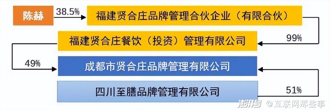贤合庄真正的高速扩张始于2019年,而恰恰在这一年,陈赫持股的福建贤合庄已不再是当前坚合庄的运营主体——成都贤合庄品牌管理有限公司的直接股东了,所以这800家门店的加盟费的“分红”,到陈赫手上,还有至少再打2波折扣,也即