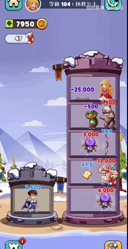 比如益智类的勇士爬塔,通过比拼数值,一层层爬向塔顶,从一个数值只有5的穷屌丝,逆袭成为战斗力99999的重甲骑士,砍下恶龙的脑袋,抱得美人归。
