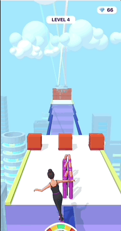 跑酷类的“姐就是女王”,脚踩高跟鞋的黑衣女子扭动腰肢,通过不断吃高跷,诡异地在各种地形上蠕动。