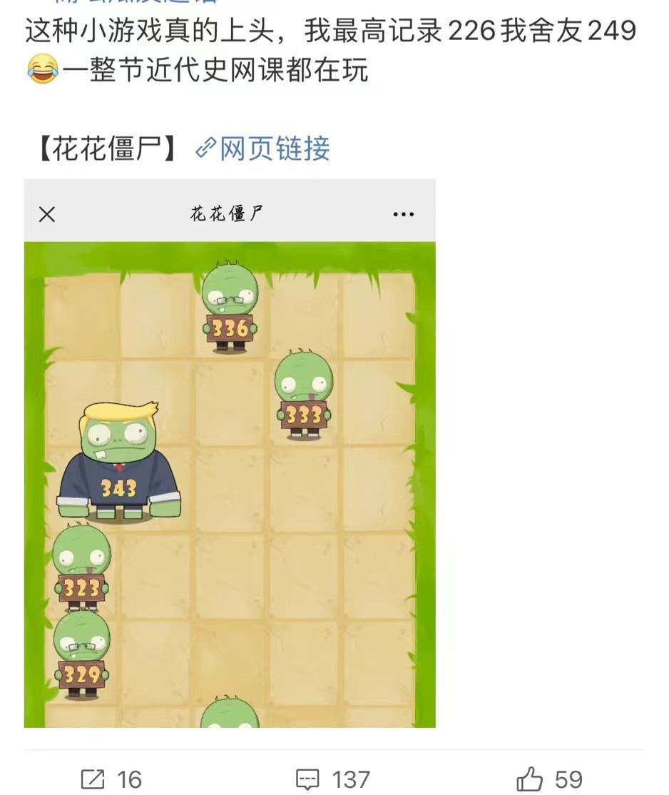 有不少人玩这些小游戏上头了,玩嗨了,闷头玩了一节近代史课。