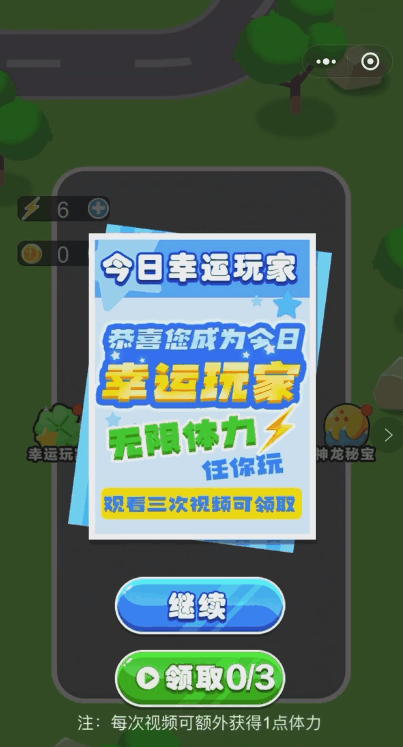 在小游戏的过程中死亡,或者没体力了,通常会提示看30秒广告原地复活,也就是所谓的用时间换钱。