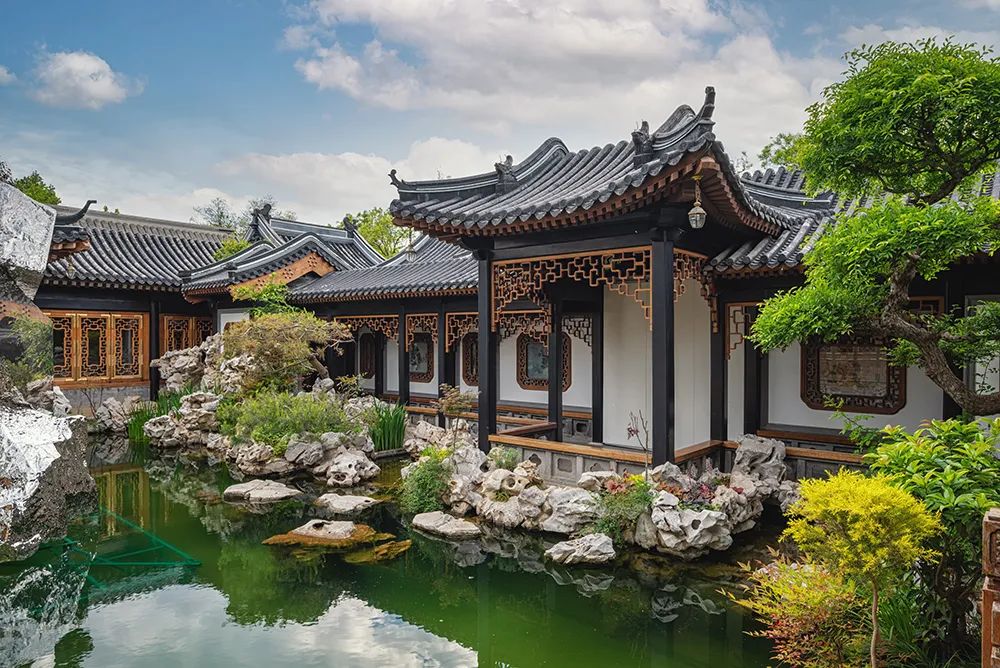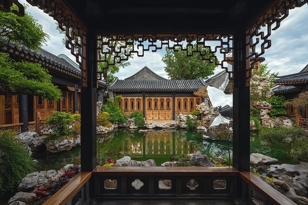 在故宫的附近,隐藏着一座精致小巧的江南园林。园林虽处闹市中,却“片山有致,寸石生情”,别有一番天地。将前面的亭子作为画框,将较远的园景囊括其中,不但起到了装裱的作用,同时还丰富了画面层次。园林无论是亭台楼阁还是门窗轩榭中都采用了低调沉稳的色彩,饱和度低,素雅清淡,反衬出园内植株丰茂、池水幽深的自然之美。