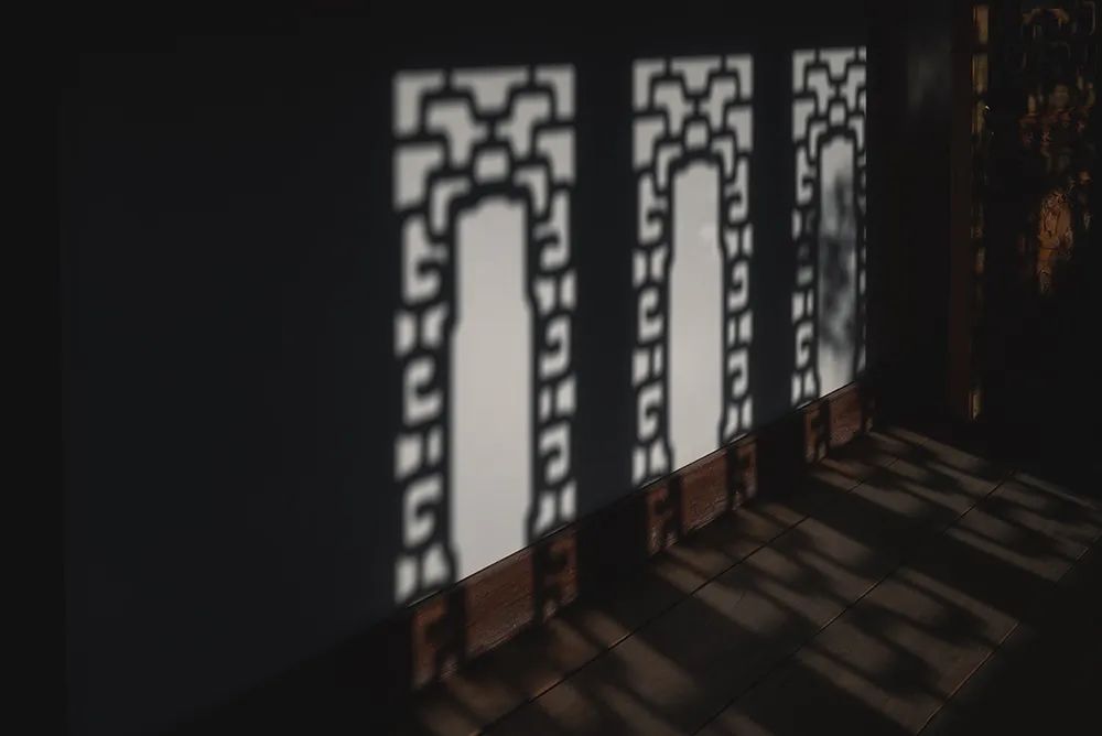 窗棂上雕刻有线槽和各种花纹,构成优美的图案。透过窗可以看到外面的不同景观,好似镶在框中的一幅画。在传统的建筑中,常会出现一些形状不同的窗棂。极富装饰趣味,让人移步观景,犹如在画廊中赏画。古诗中有云:“窗含西岭千秋雪,门泊东吴万里船。” 夕阳西下,窗棂的影子映在屋内白墙和地板上,简而美。
