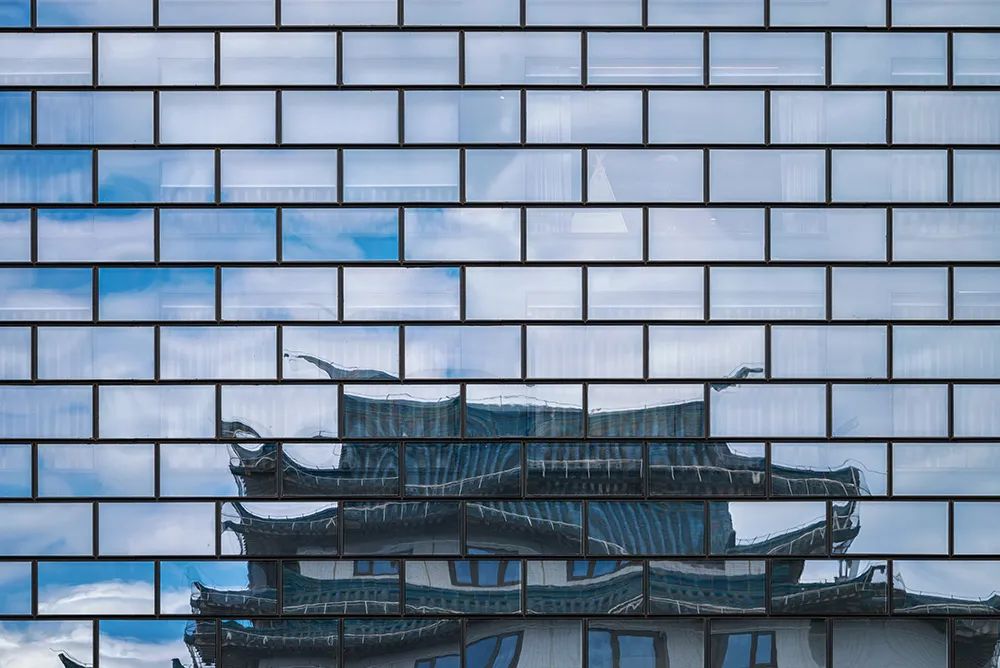 上图是我用尼康Z 5在一个多云天拍摄的嘉德艺术中心的玻璃墙,墙上除了天空和绵云外,还映着华侨大厦睿世酒店的局部,仿佛云端上筑就的城楼一般虚幻缥缈,如置身于梦境。
