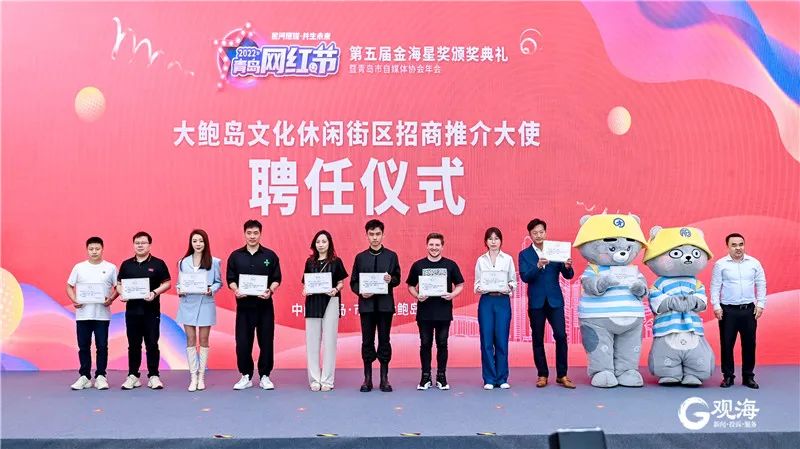 市北区历史城区管委会主任袁涛为来自视觉志的冯建波、古麦嘉禾的于爱山、“青记”李杨等头部自媒体大V颁发首批“大鲍岛文化休闲街区招商推介大使”聘任书。青岛日报社党委委员、副总编辑,青岛市自媒体协会会长樊泽顺和市北建投集团党委书记、董事长朱宏年为“青岛市自媒体协会大鲍岛新媒体创作基地”揭牌。创作基地将设置线下办公休闲空间,并通过定期发布、邀请采风等形式,搭建自媒体人创作和交流的平台。“诚邀各位网络名人、自媒体大V、网红达人常来市北走走看看,深切感受脚下这片热土蕴藏的历史文化、发展潜力和人情温暖,充分展现大家的创新、创意、创业。”市北区委常委、宣传部部长张宇说。