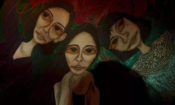 棠夫人在棠家内部获得了“太上皇”式的权威,但这种权力的获得是基于其自身母性的丧失和对女儿棠宁母职的剥夺。女儿成为其达成目的的工具,为保留家庭的体面与棠宁的工具价值,她将棠宁与棠真间的母女关系掩饰为姐妹关系。与电影《唐人街》中的伊芙琳一家类似,棠府对外宣称的“一家三口”实质是“一家三代”,这使得棠宁与棠真之间本可拥有的母女温情被压抑疏离的敌对关系取代。在家庭内部,她一贯是规则的制定者,她为三人统一定做的制服便象征着其不容置喙的权威,子辈成为如“名牌包”般供其展示和使用的附属物。她试图将女儿作为自身意志的载体和自我的复刻,掌握着棠宁的身体控制权,但棠宁的反抗使之感受到自身权威所受的威胁,因而她不惜以放弃棠宁、选择棠真作为接班人的方式来捍卫自身的绝对地位。这显示了母女之间的微妙冲突:“女人只有在涉及孩子尤其是女儿时,才能够享受到那种男人在女人面前所感到的绝对优越的快感;如果她不得不放弃自己的特权和权威,她就会产生受挫感。”片中表现棠家三位女性形象的油画首次出现时,棠夫人的阴影笼罩于棠宁之上(图 12),而当棠宁与母亲决裂后该幅油画再次出现时,棠夫人的阴影已经从棠宁转移至棠真身上(图 13),代表着棠夫人在二人之间的抉择,面对棠宁的反叛,对棠真的悉心调教成为其自我意志扩张的又一途径。为求得自保,棠夫人甚至选择炸死出逃的棠宁,其为女儿诵念《心经》与《往生咒》时流下的不过是鳄鱼的眼泪。
