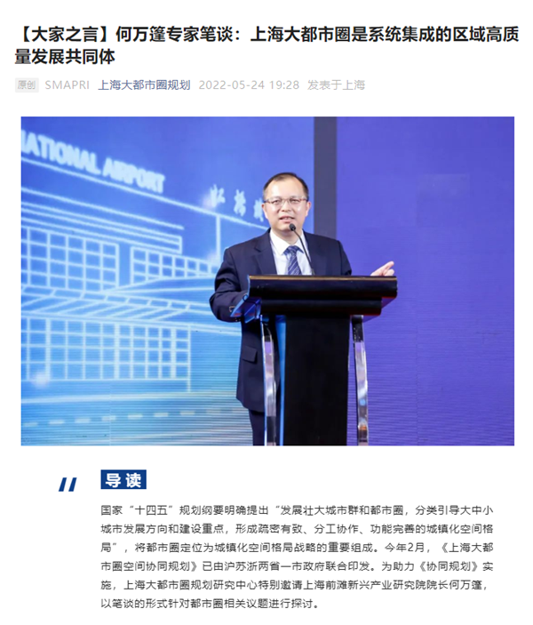 前滩眺望 | 何万篷院长答“上海大都市圈”七问