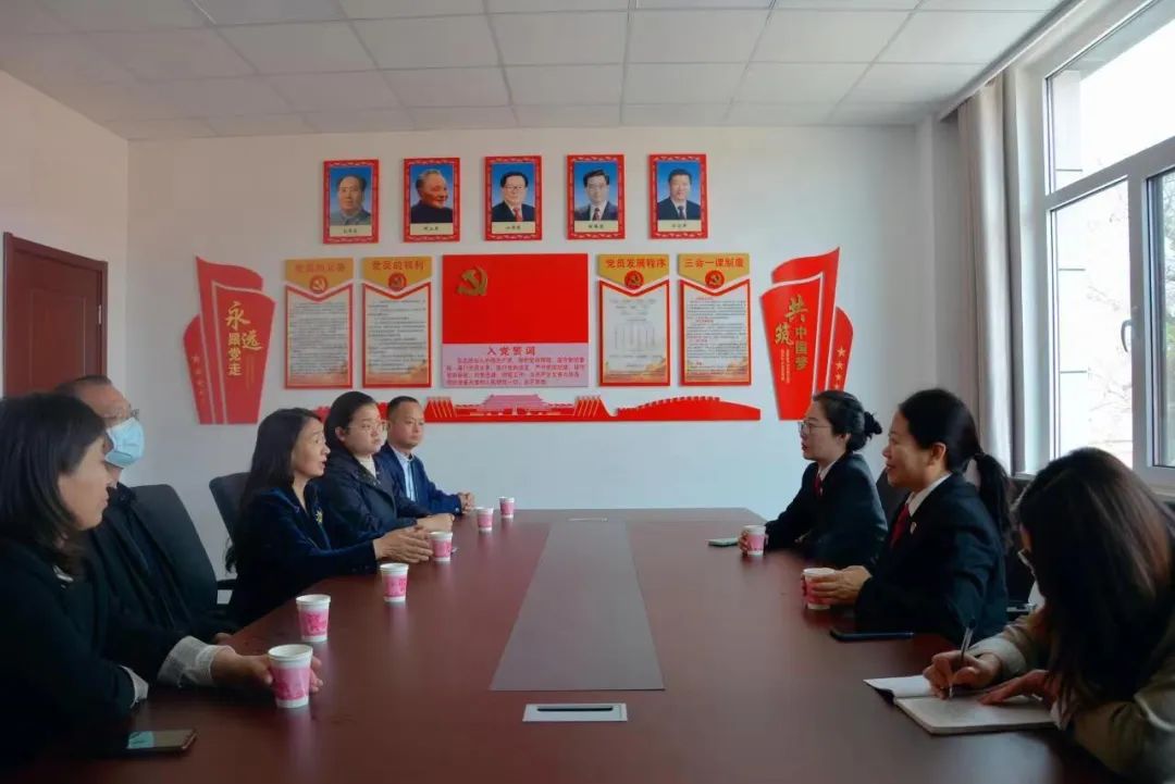 近日,高碑店市直机关工委书记窦长泉、副书记王秀梅、市妇联主席孙卓、市团委书记叶校瑞、教体局青少年服务志愿咨询师杜泽辉一行5人在高碑店市人民法院党组成员、副院长董娜,党组成员、政治部主任周素青的陪同下,深入新城人民法庭进行调研指导工作。