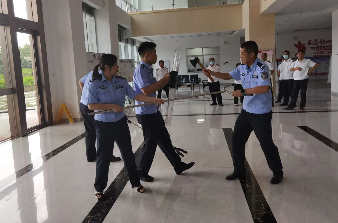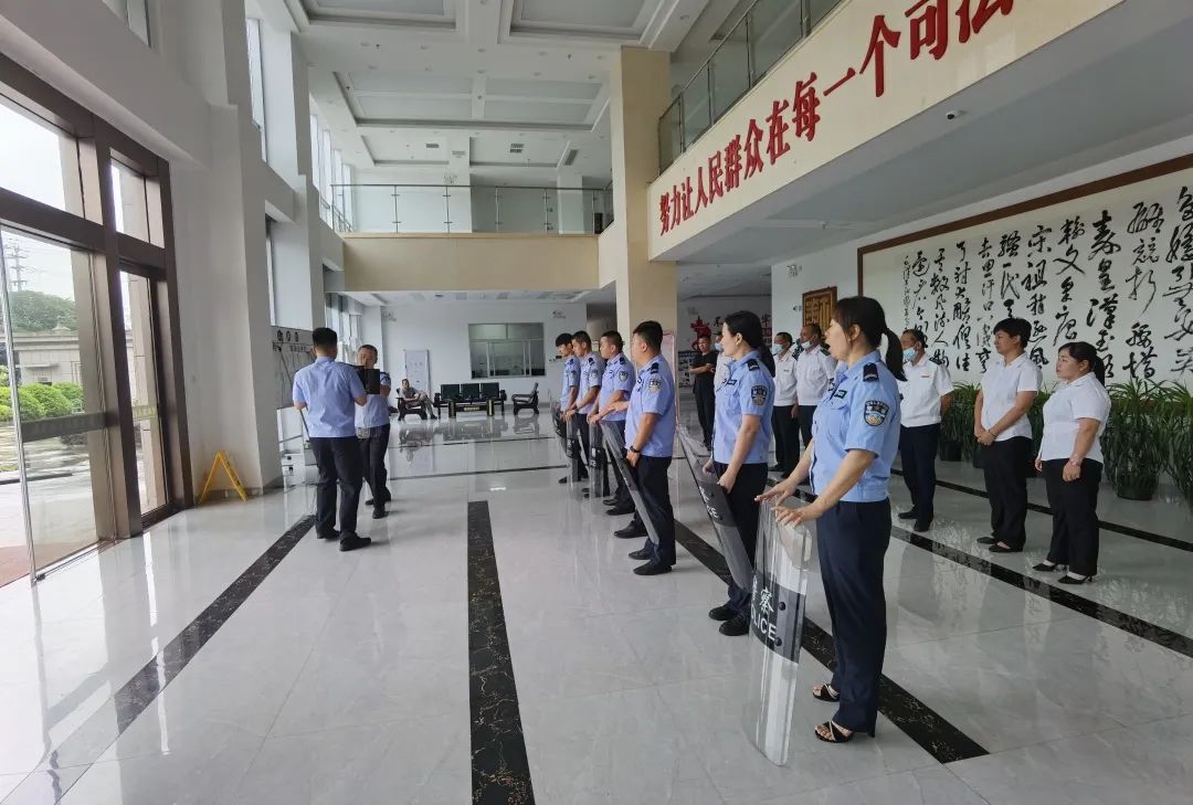 为增强干警安全防范意识和应急处突能力,保障人民法院审判执行工作有序进行,6月10日上午,平和法院组织全体法警、辅警、安保人员开展警械使用训练及安保应急处突演练,提高干警和安保人员应对处置突发事件、维护机关安保能力。当天下午,组织开展了一次应急突发事件处置演练。模拟“当事人”醉酒不配合安检、冲闯安检场所持刀扬言威胁的突发场景,法警反应迅速、配合得当,及时有效控制“不法人员”。