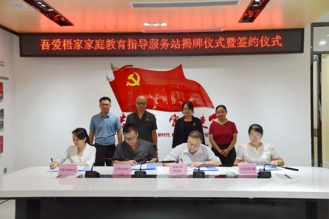 吾爱梧家家庭教育指导服务站由万秀区妇联联合万秀区委政法委、万秀区法院、万秀区教育局等部门联合成立。活动现场各相关负责人联合签署了《吾爱梧家家庭教育指导服务站协议书》并互换文本。