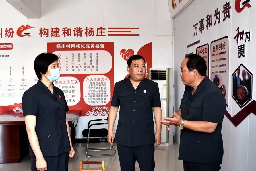 随后,苏勇一行又驱车来到任寨乡杨庄村“小板凳”法官工作站。界首法院驻村工作队的两名法官,在完成日常工作的同时,创新推出“小板凳”法官工作站,积极推进基层矛盾纠纷的源头预防和前端化解,打造法治乡村社会治理新样板。苏勇对“小板凳”法官工作站零距离接触群众,开展法律宣传、矛盾纠纷和安全隐患排查、信访劝导、免费提供法律咨询,对村里出现的矛盾纠纷,及时启动多元化解矛盾运行机制,推动实质性化解,切切实实为群众办实事、办好事的做法给予充分肯定和高度赞赏。
