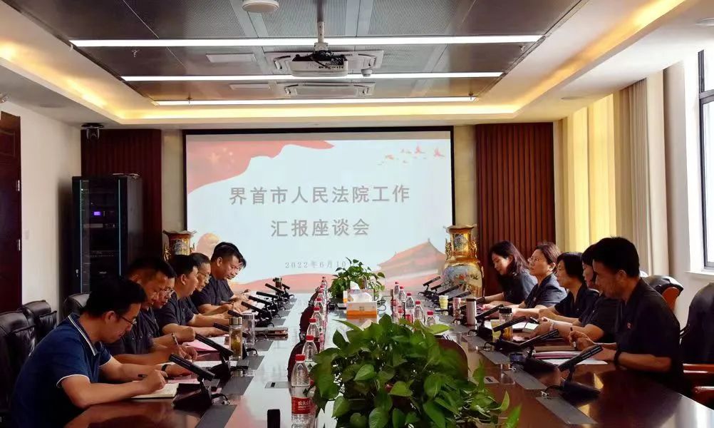 座谈会上,界首法院党组书记、院长蒋承光就界首法院今年以来的工作情况进行了汇报。在听取了蒋承光院长的工作汇报后,苏勇院长对界首法院整体工作给予了充分肯定,并对下步工作提出了具体要求:一是要推动执法办案,实现“双过半”。要聚焦主责主业,补齐短板弱项,提升审判执行质效,提高业务能力和业务水平,奋力争先进位,以实际行动诠释司法为民情怀。二是要优化营商环境,服务高质量发展。要统筹兼顾旧存案件和新收案件,加快破产案件、涉企执行案件办理进度,对标对表、逐项落实,为经济社会高质量发展提供法治保障。三是要加强诉源治理,擦亮工作品牌。要坚持诉源治理、多元化解,持续打造“小板凳工作站”等特色品牌,让大量纠纷通过前端防控消化在萌芽状态,助力基层社会治理。四是要做好信访维稳,提高群众满意度。要着力解决人民群众急难愁盼的问题,不断提高人民群众的安全感、满意度,为迎接党的二十大胜利召开营造良好的社会环境。