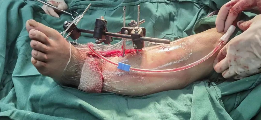 术中,医生们在显微镜下,凭借娴熟的技艺“穿针引线”,将她断裂的肌腱、血管及神经精细地吻合,最大程度地保留了小腿的活动功能。
