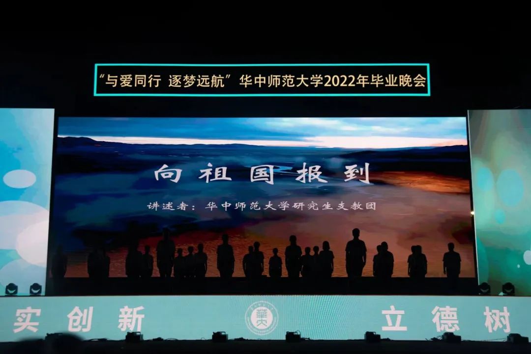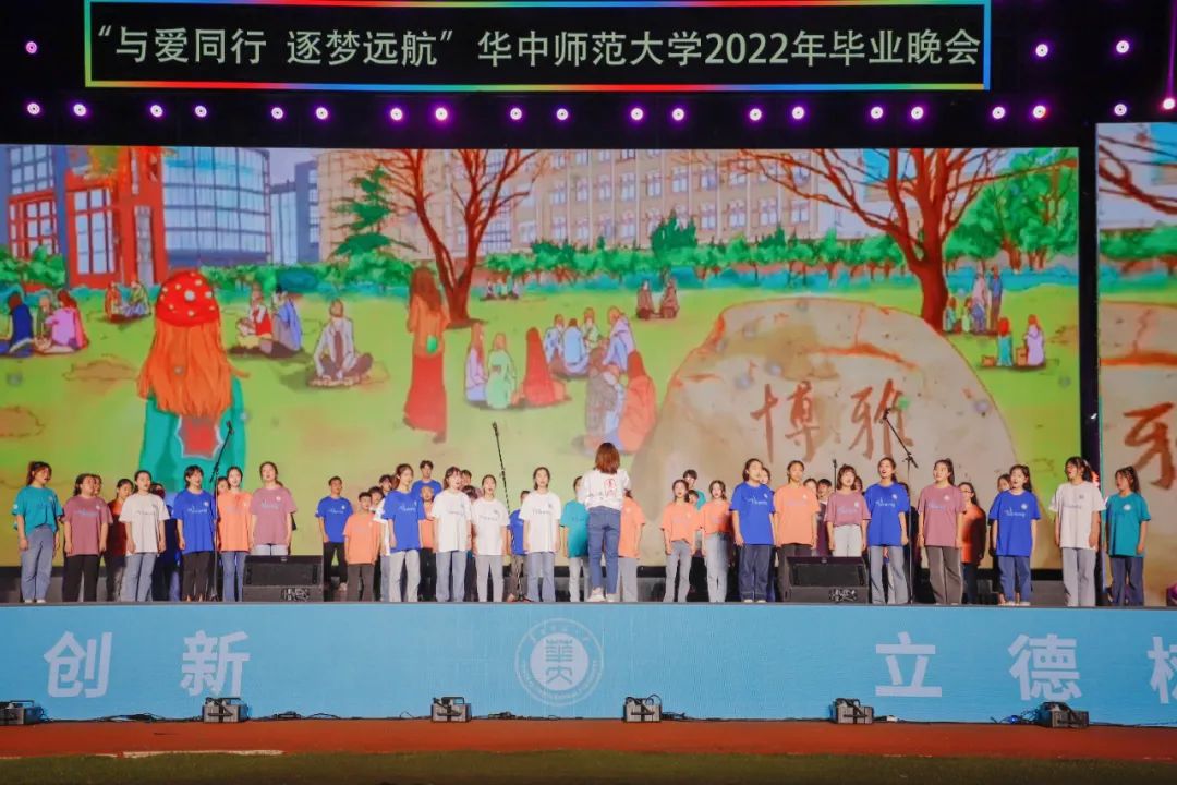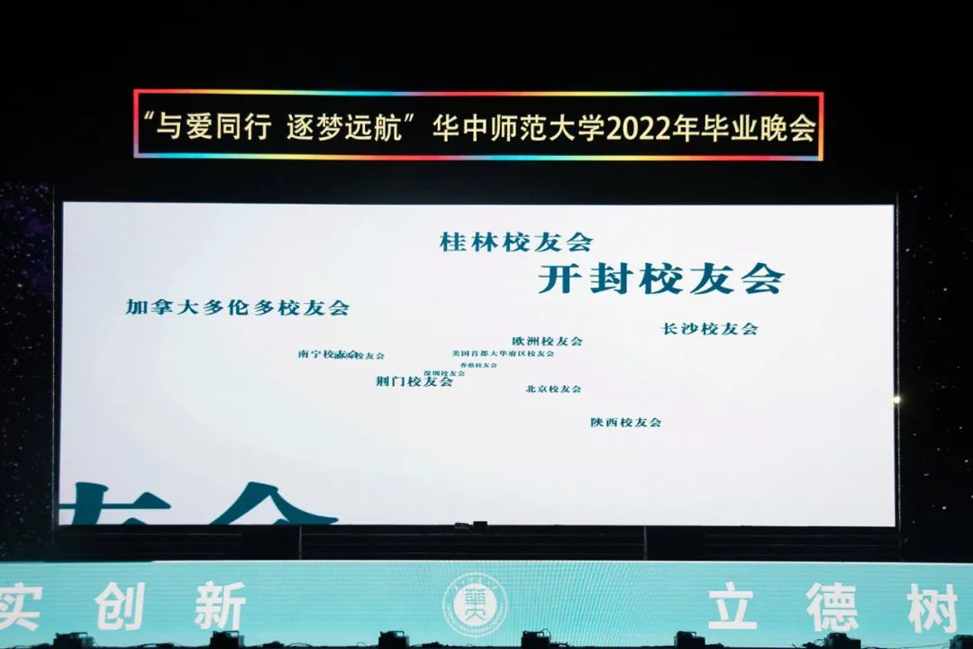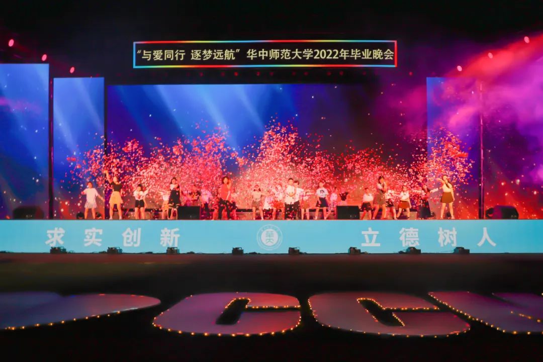 校党委书记赵凌云,校长郝芳华,校党委副书记查道林,副校长夏立新,校党委副书记、纪委书记陈厚丰,副校长彭双阶,副校长李鸿飞,校党委副书记陈迪明出席。晚会以“线下主会场+线上分会场”方式举行,为2022届毕业生上最后一节“爱在华师”主题思政课。