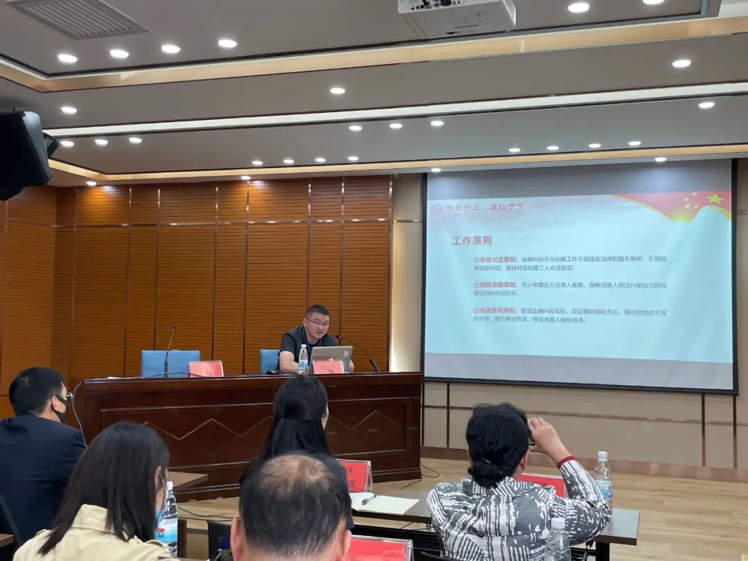 2五华区人民法院特邀调解员、昆明理工大学法学院副教授金霞以《银行业纠纷调解理论与实务》为题,将实际案例与调解理论相结合,从调解的基本原则、金融纠纷多元化解的直接依据以及调解的基本步骤等方面进行了深入讲解。