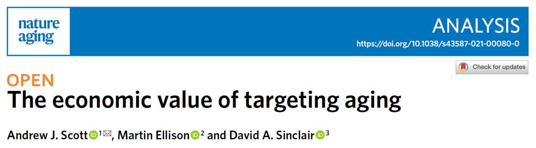 2021年7月,Nature Aging 期刊发表来自伦敦商学院 Andrew Scott 等人的文章:The economic value of targeting aging。