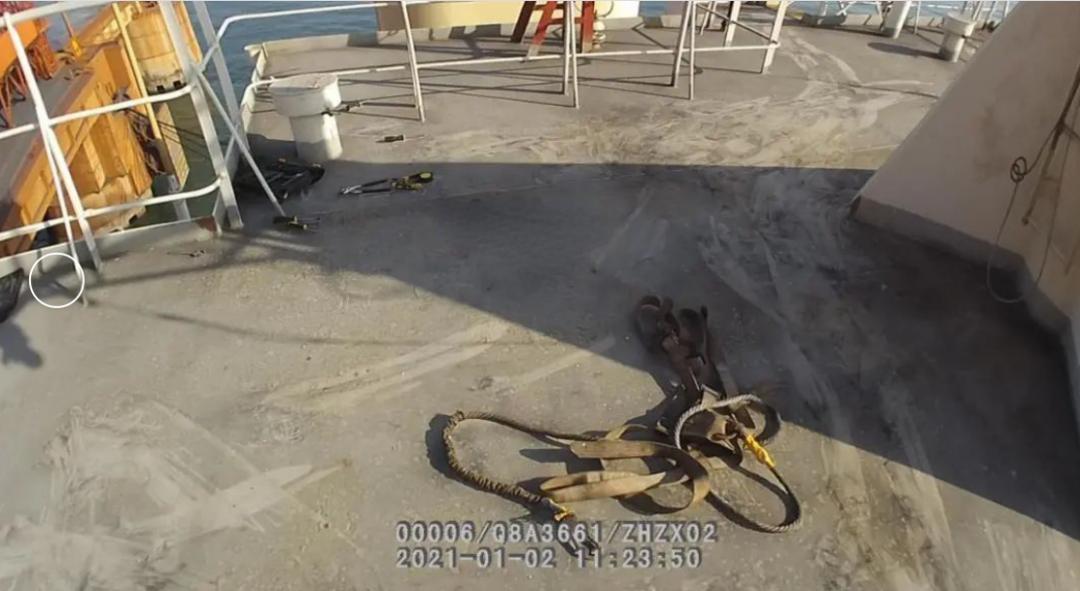2、当事人安全意识淡薄,未有效落实安全防护措施。当事人在船舶未靠妥码头的情况下提前从事解绑作业,其行为不符合集装箱船舶系固解绑安全操作要求;独自站在距离舱底9.9米高的作业平台上解绑作业,未采取穿戴安全带,系安全绳等安全保护措施,导致其在伸手拿取左前方高处重量为12.5千克的绑扎拉杆时,人随拉杆跌落舱底致死。