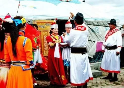 青海海西蒙古族婚礼按说亲、定亲、迎亲、婚宴等主要程序进行。迎亲是在结婚典礼前几天,男方将整羊等礼物送到女方家,称为送佐萨、德吉礼节;再进行触动蒙古包墙根围子之礼、迎亲礼,同时,新娘的父母及亲属给新娘陪嫁的礼品,送到新郎家。