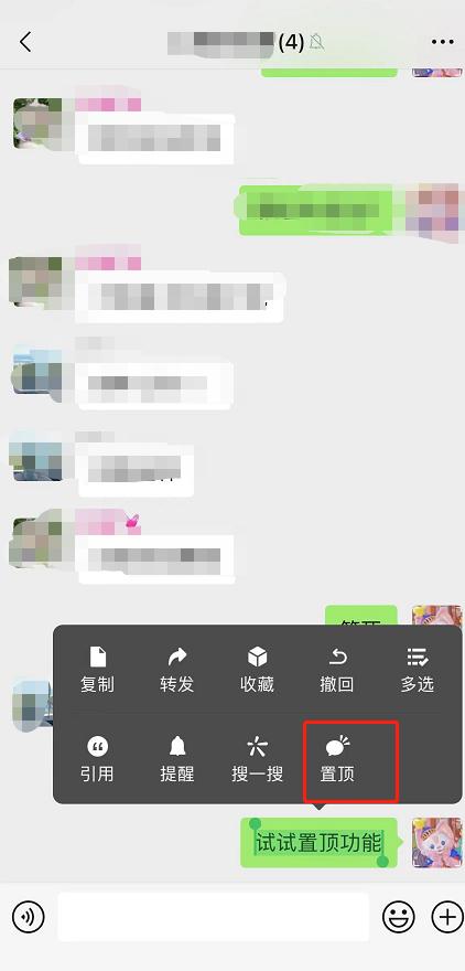 群主和群管理员长按一条消息,在弹出菜单中选择“置顶”,就能将消息固定到顶部。群成员点击后会自动定位到消息所在位置,方便查看完整上下文内容。