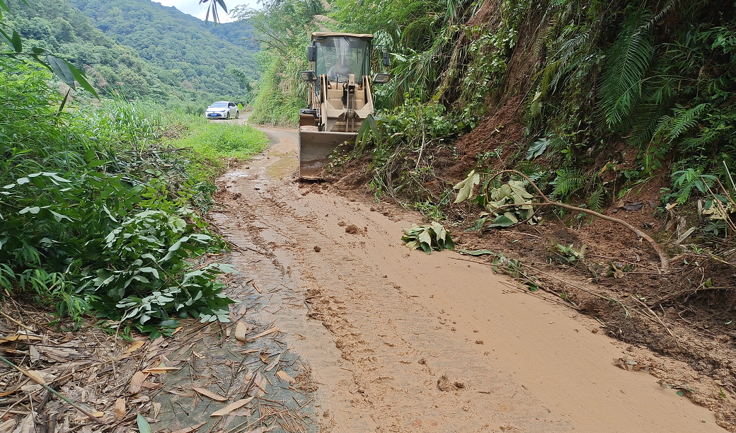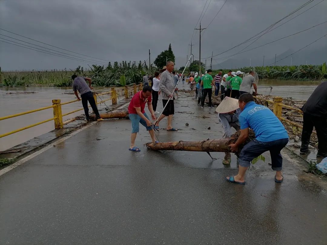 △ 怀集县洽水镇多处树木倒状,道路塌方,经镇村干部应急处置后已恢复通车。图源 怀集县融媒体中心