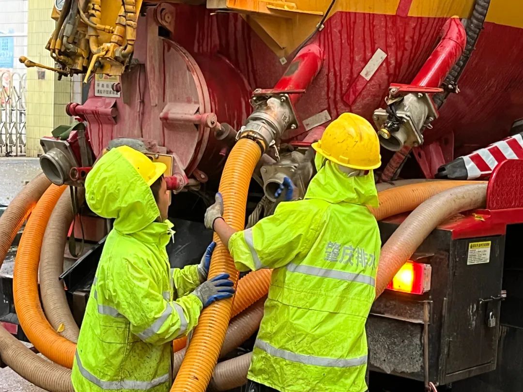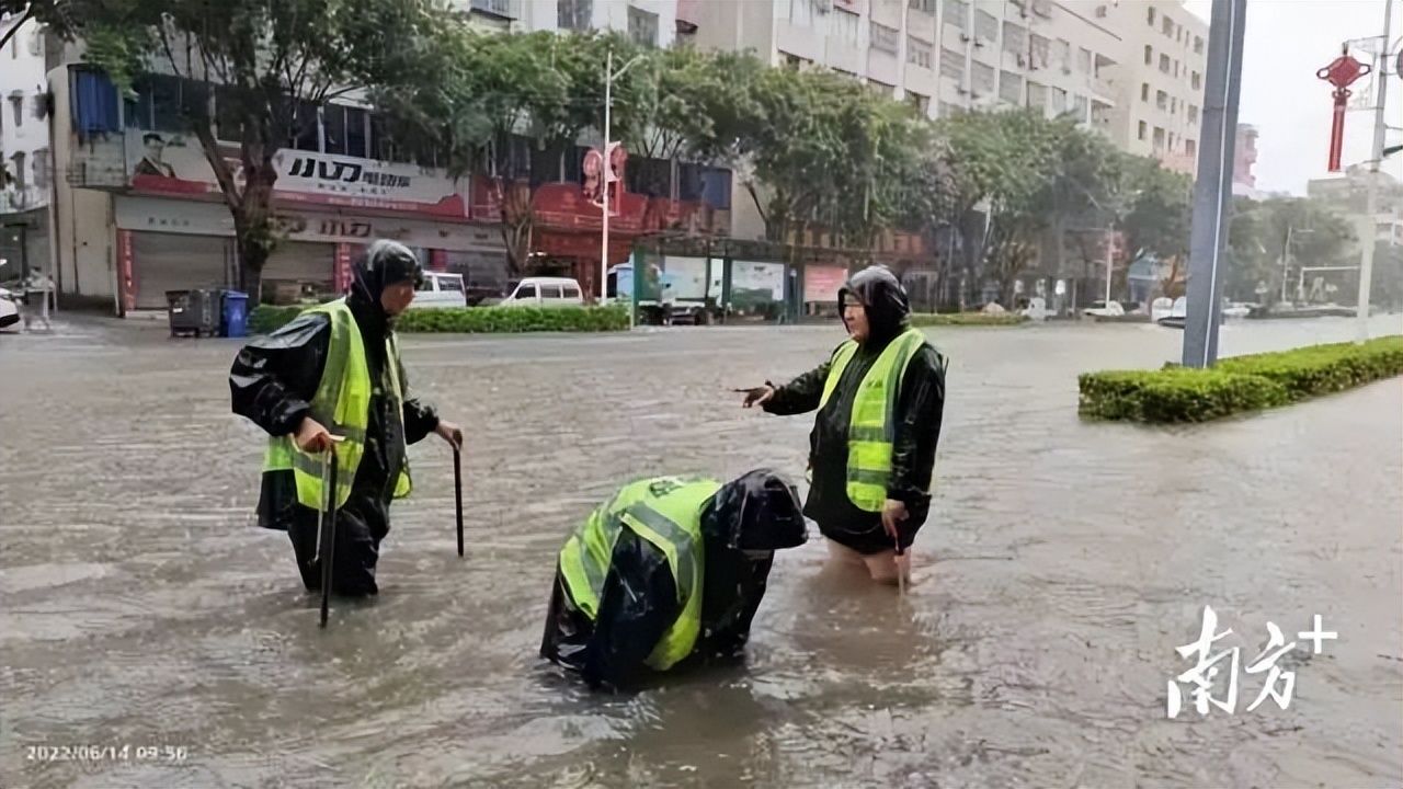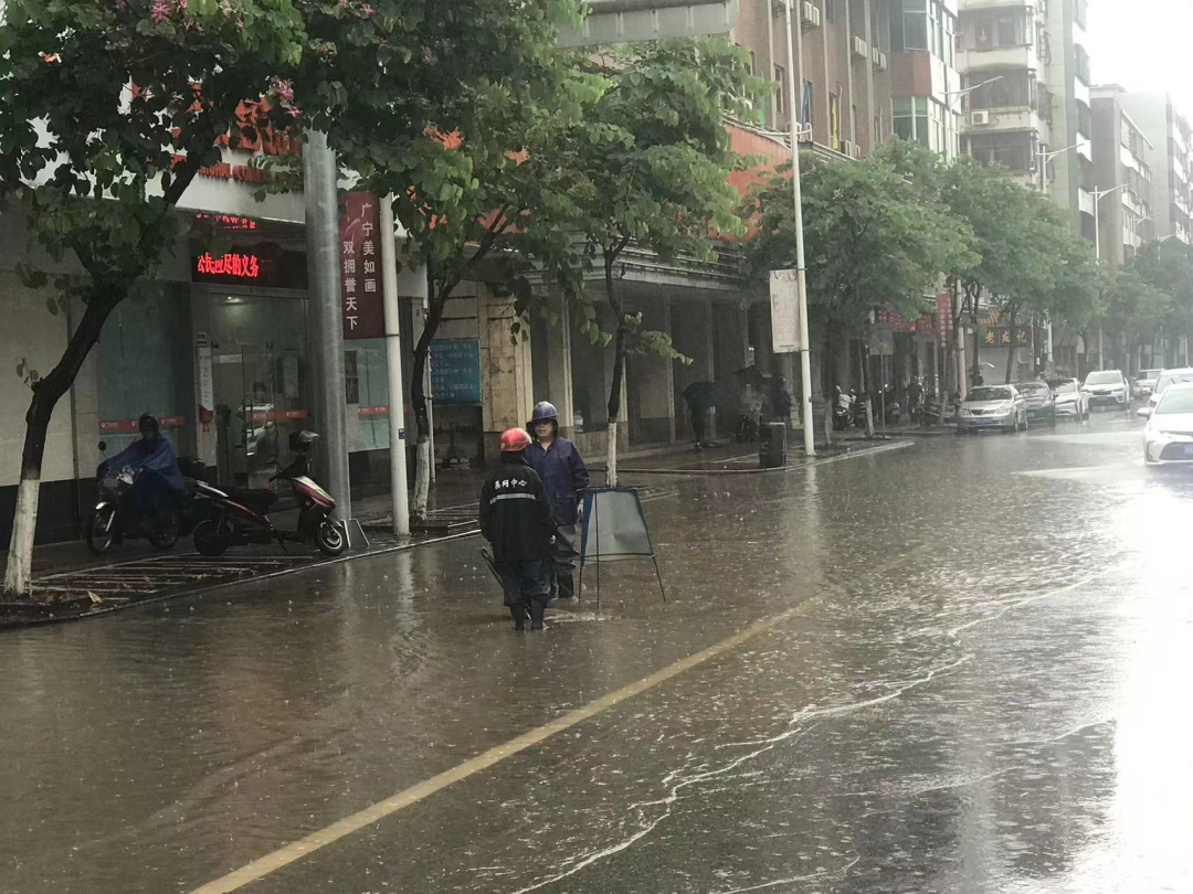 防汛期间,我们的值班人员对积水黑点、盲点加强巡查,并及时清理下水道的树枝、树叶和倒树。