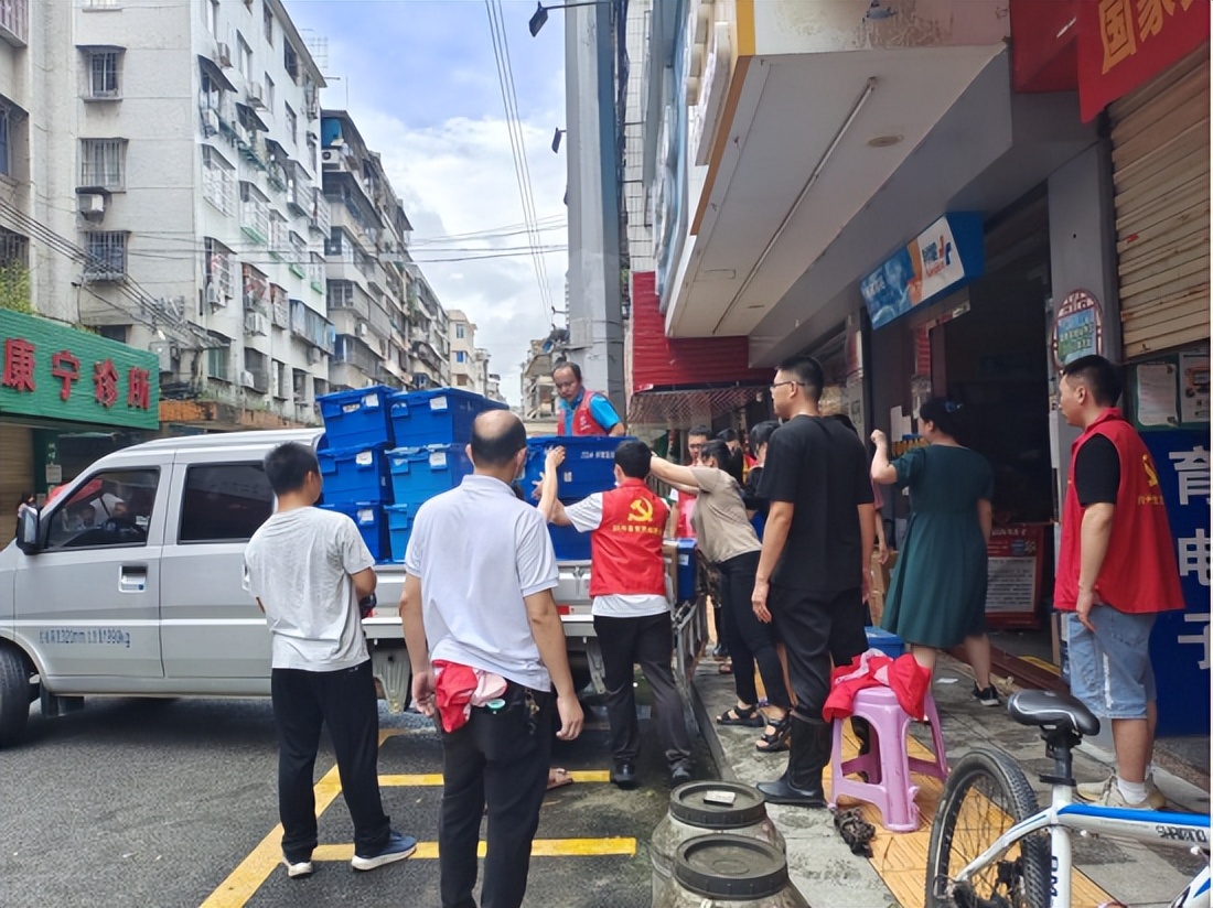 △ 6月14日,党员干部志愿者在帮群众搬运转移物品。图源 封祖轩