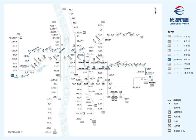 △长沙地铁6号线线路图。推动轨道线路接入长沙各类交通枢纽