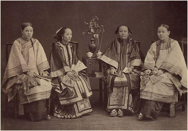 张爱玲在《更衣记》里这样描述了清末女性穿搭:“穿在外面的是‘大袄’。非正式场合,宽了衣便露出‘中袄’。中袄里面还有紧窄合身的‘小袄’,上床也不肯脱去。削肩、细腰、平胸、薄而小的美女标准失踪了,她本身是不存在的。”虽然在现在看来这些衣服属实保守,但上衣袖子可以七分长,腰身可以收窄,裙边可以提到小腿上部的穿搭,在当时就已经算得上是极富想象力的改变了。