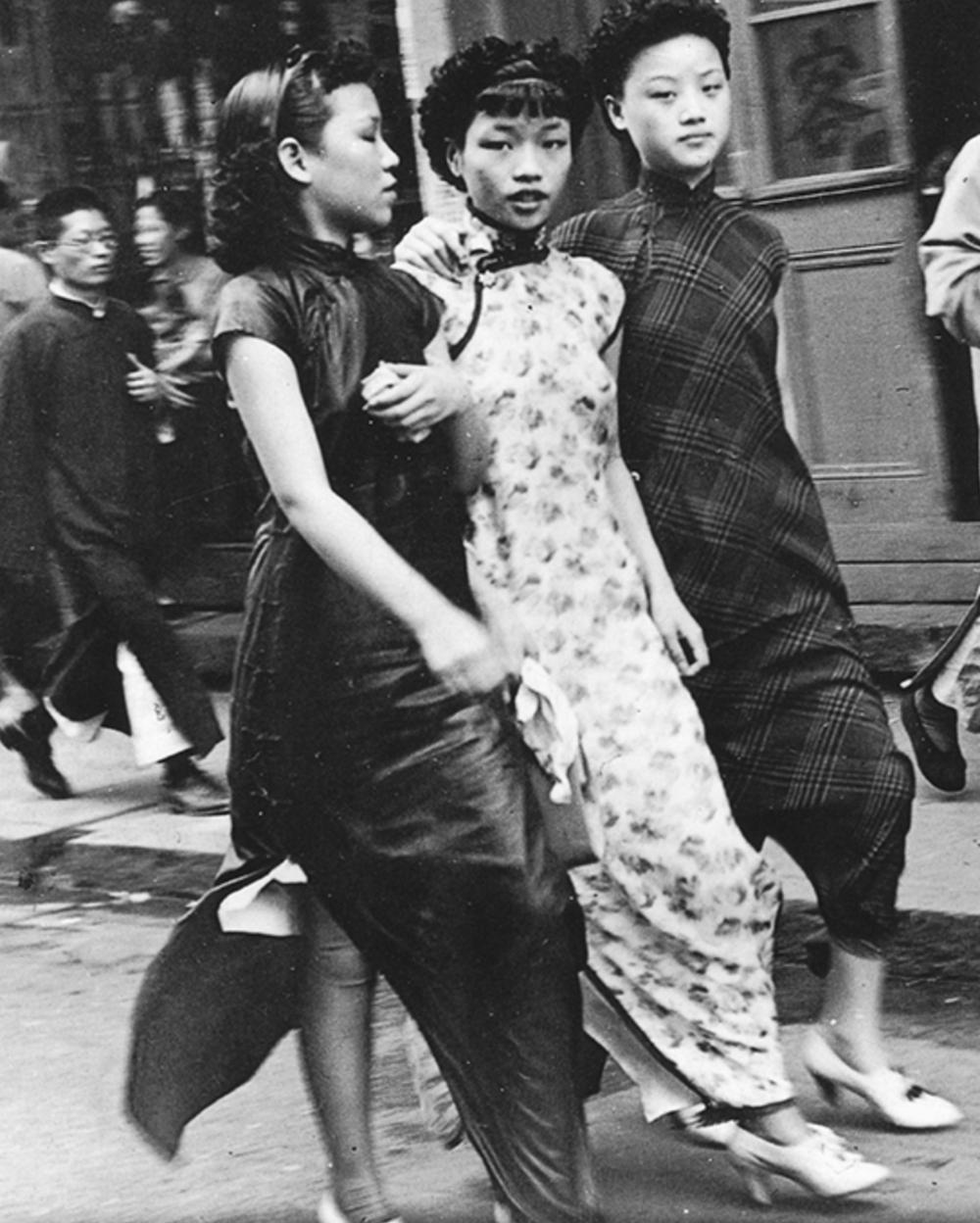 1928年,在北平漫步的女士。当时女性穿起旗袍的缘由,不是复古,而是要声张自己的权力——既然富有权力的男性穿袍,追求平等进步的女性也该穿袍,旗袍就成了平起平坐的符号。