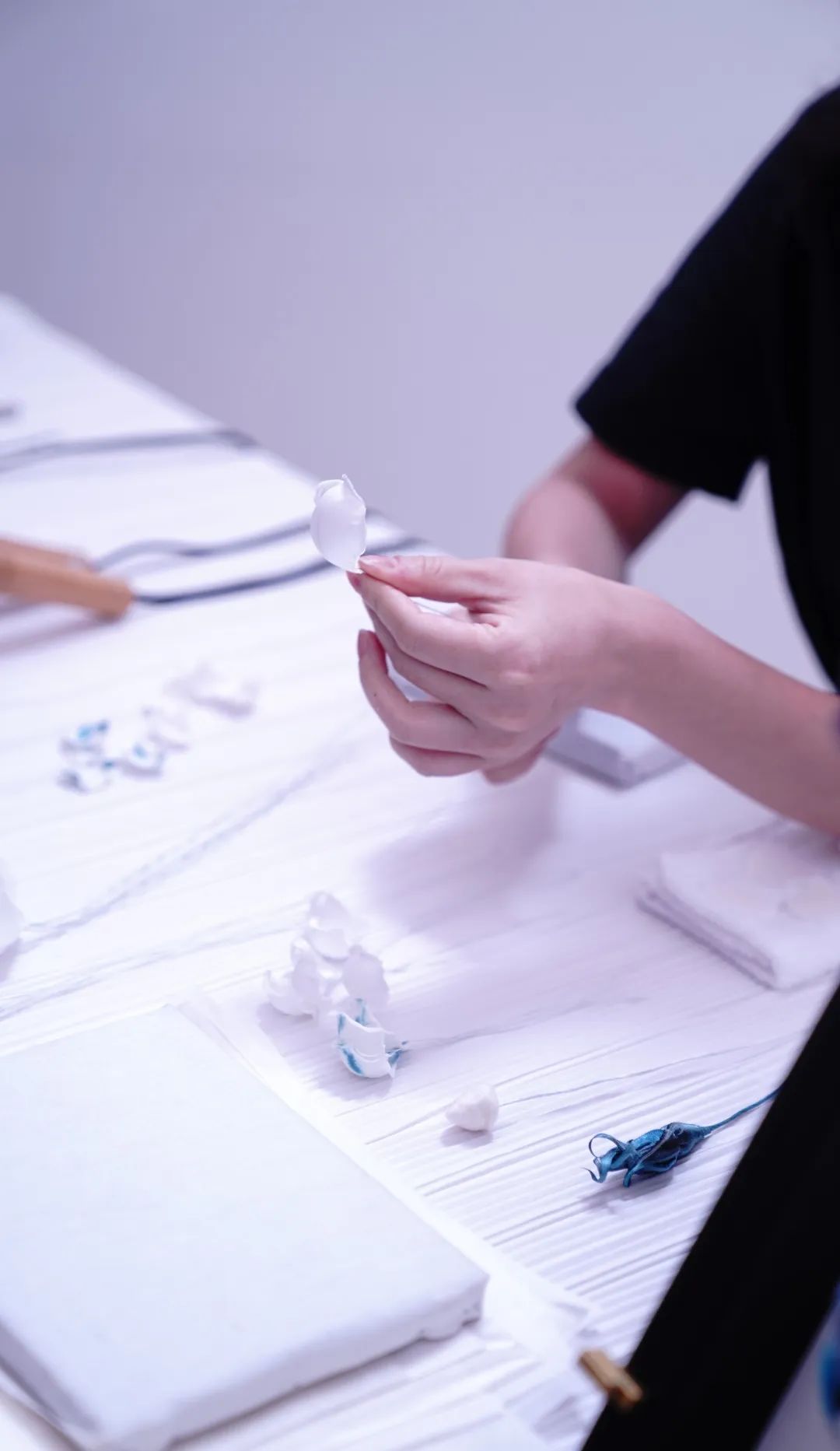 沉下心来做基本功,再进行系统的积累。比如对「面料」的了解程度,面料不贵,真心最贵重;我会将面料撕裂、破坏,用各种工具进行变形,察觉其中的形态、肌理,我觉得这是一种有趣的过程,也是一种探索精神。