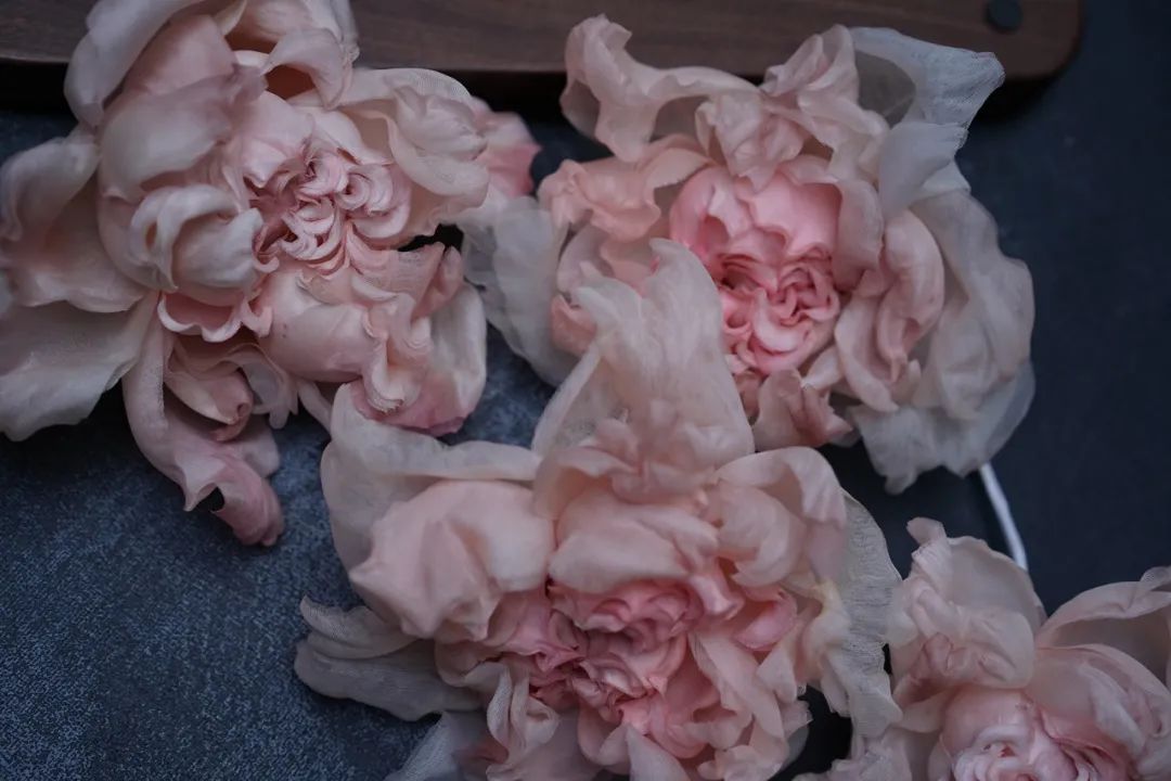 绢花的材质多以真丝、棉麻的布料为主