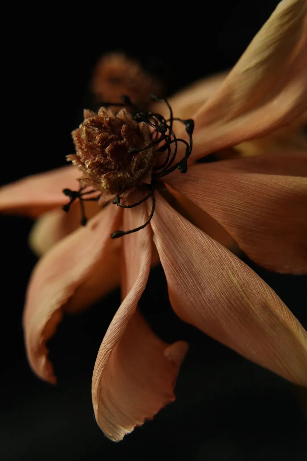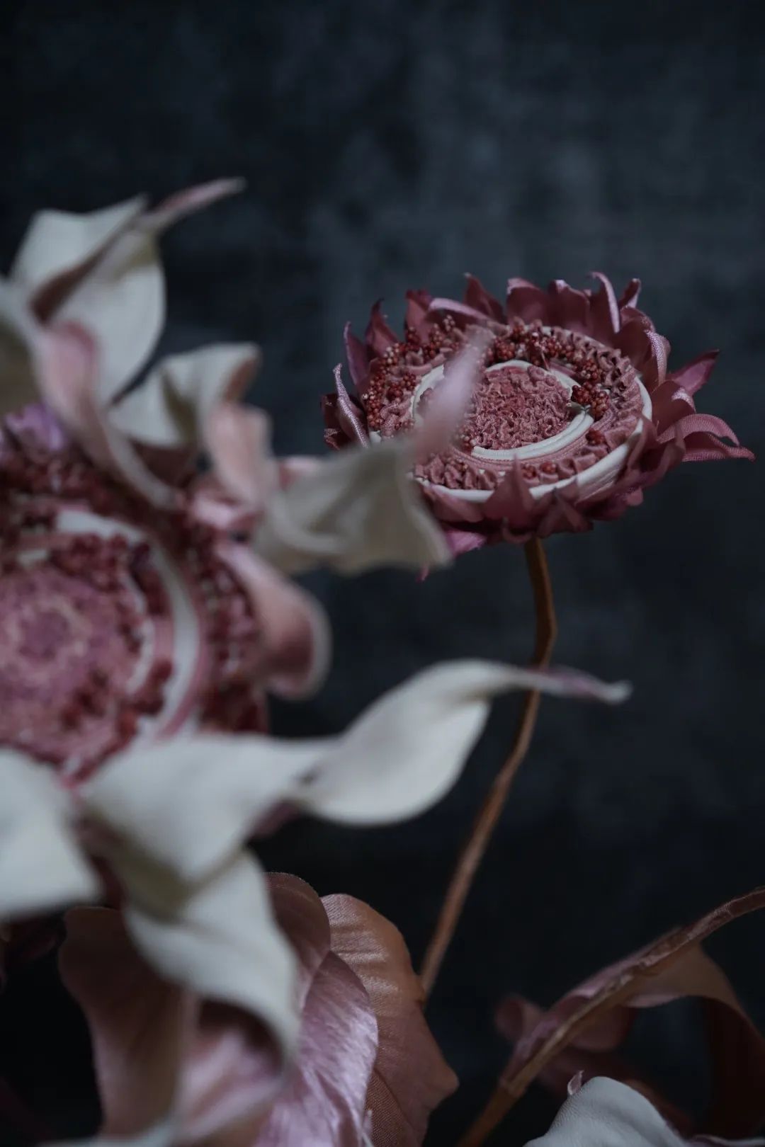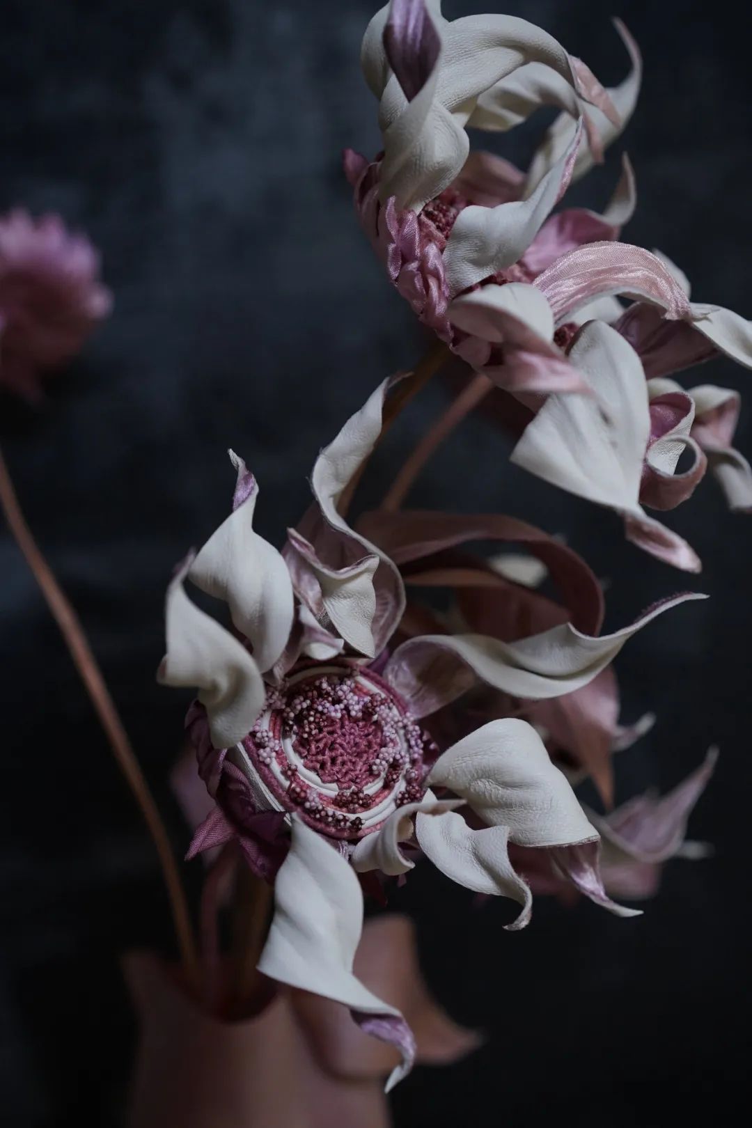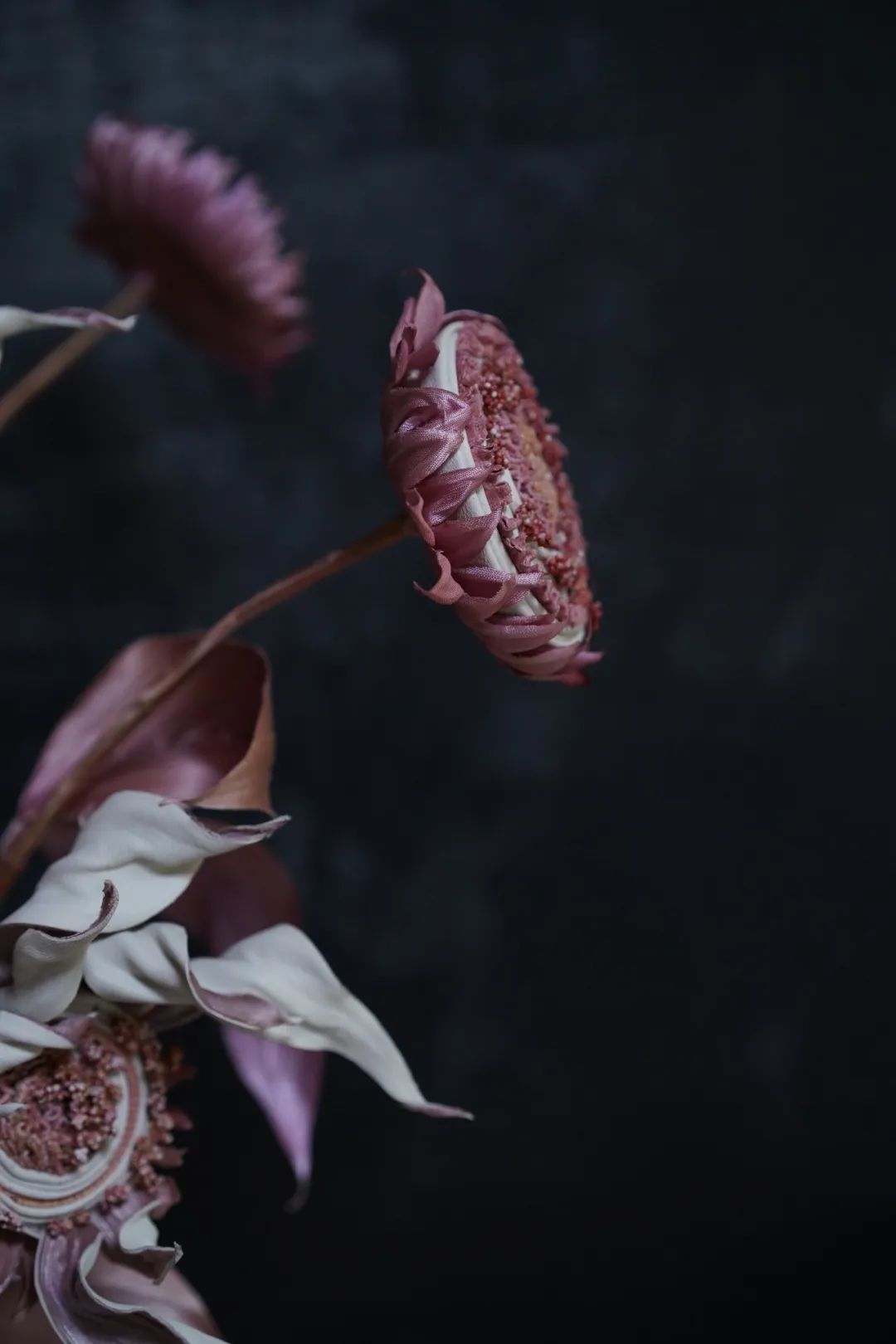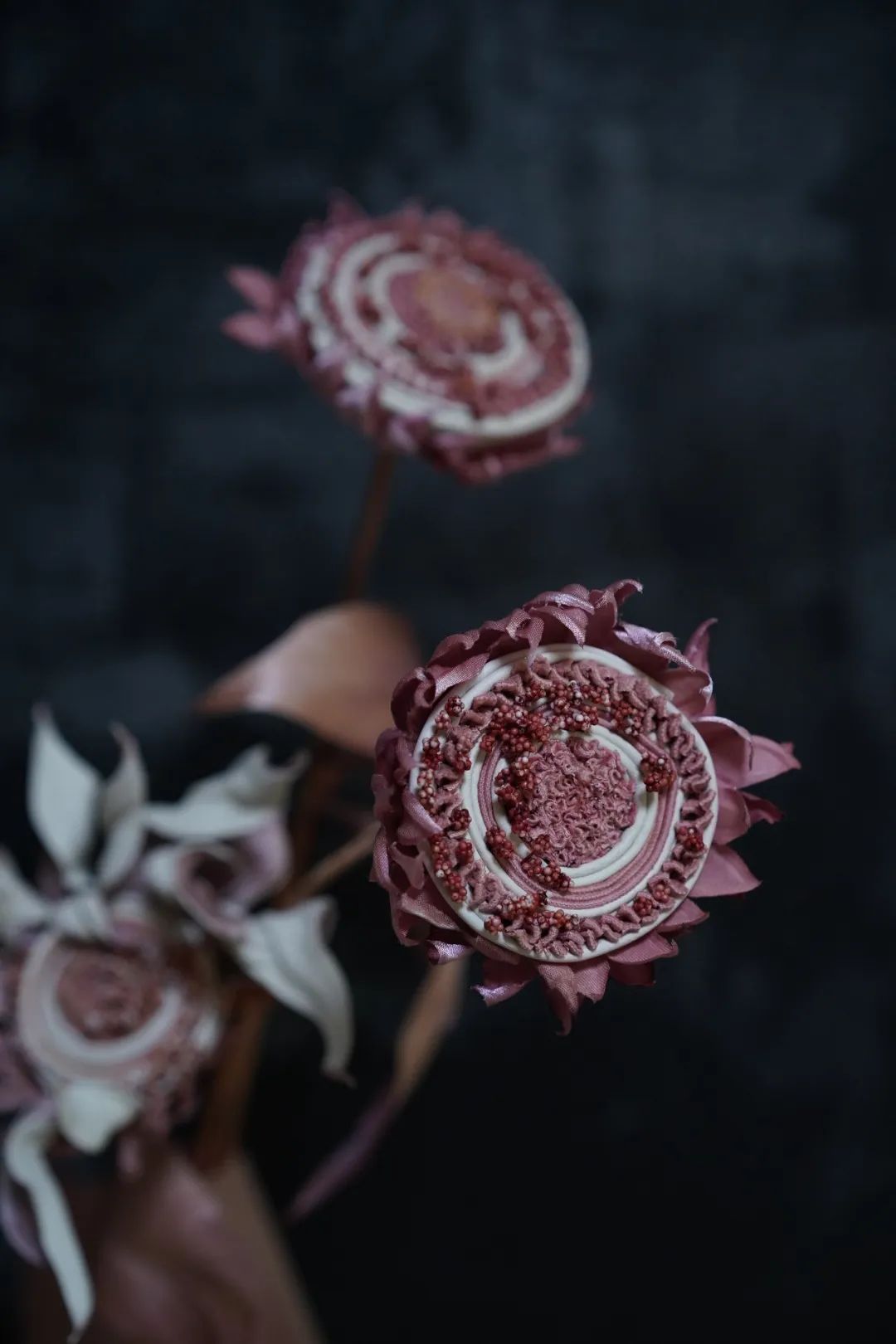 ● 李爽作品「枯萎的松果菊」现在李爽也在自己进行绢花教学