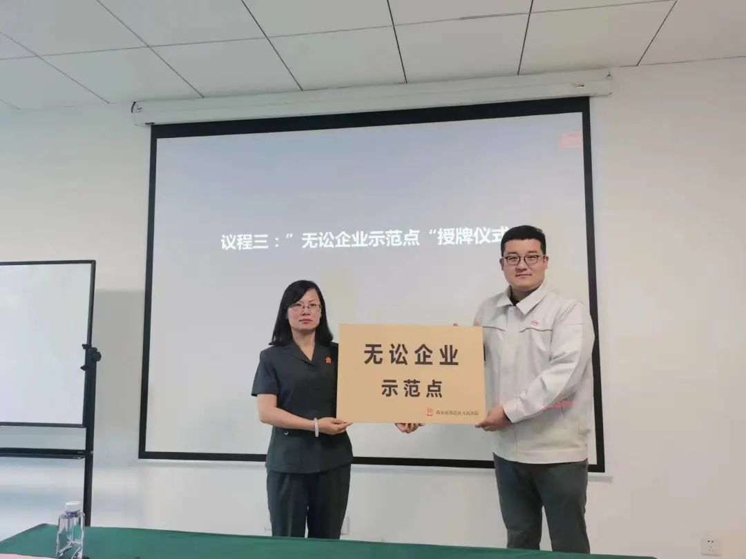 为持续推广“三力联动”工作模式,深化人民法庭参与基层治理工作成效,6月14日,西安市鄠邑区人民法院党组成员、执行局长宫美安及草堂人民法庭干警到比亚迪汽车草堂基地,举行“无讼企业示范点”授牌仪式,共商“示范点”创建工作,携手推进诉源治理与优化营商环境互促共建。