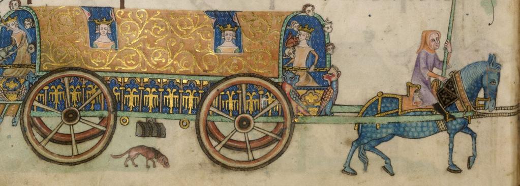 四轮车的优点是运载量大,运行平稳,但需要较为平坦的路面行驶,而两轮马车则更适合崎岖的地形。早在古罗马时期,四轮马车上就已出现了带有窗户及屋顶的车厢,这类马车或用于长途陆路旅行,或用于婚礼祭仪等重大场合,是最受上流社会青睐的出行工具之一。