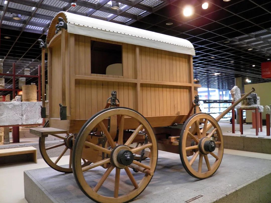 鼎盛时期的罗马帝国具备路况良好的上千米平坦大道,使得这种四轮马车能畅通无阻。/图为根据出土的罗马马车重建后的模型15世纪末时,在匈牙利国王马蒂亚斯的大力推动下,小镇科奇的工匠们制造出了一种又轻又快的四轮车,它便是灰姑娘南瓜马车的同类、也即后来人们最常使用的“coach”封闭车厢马车。