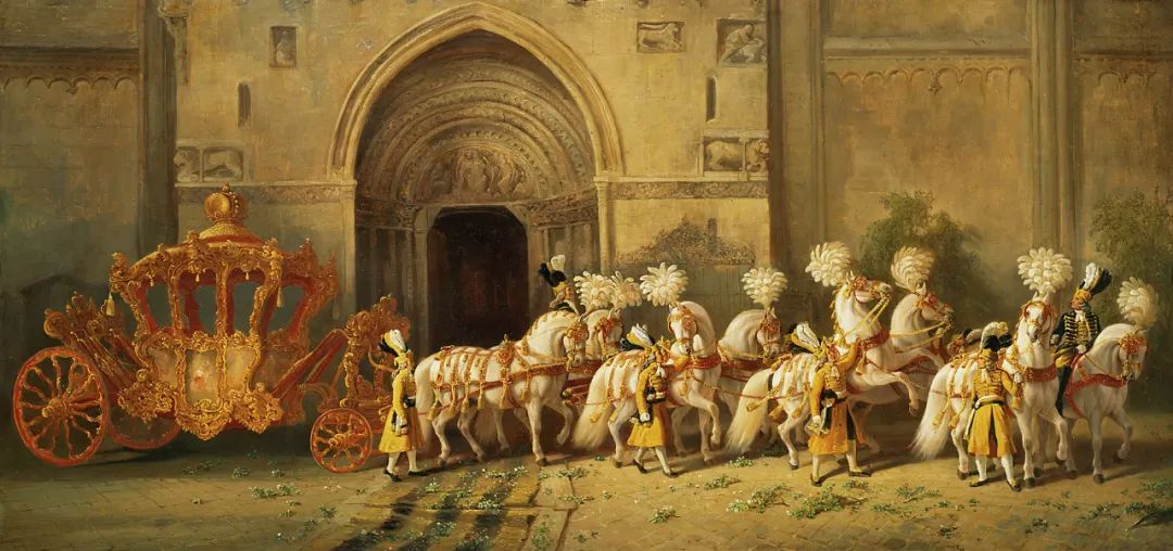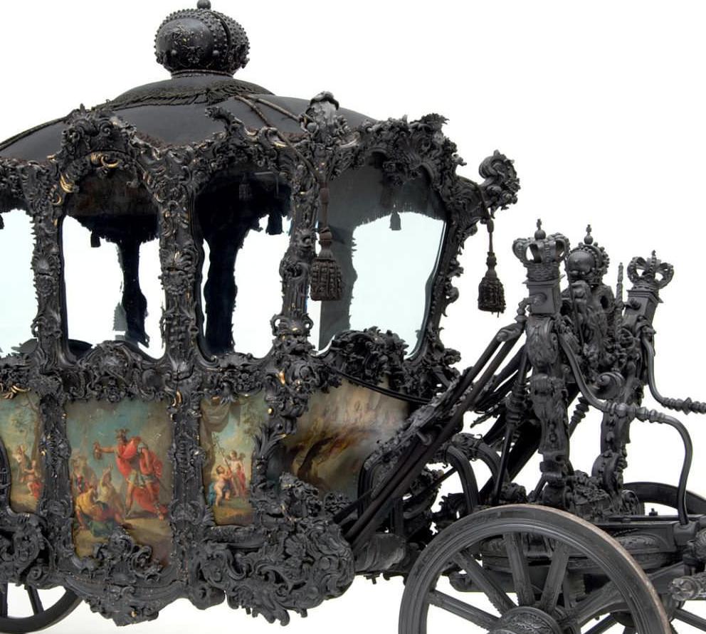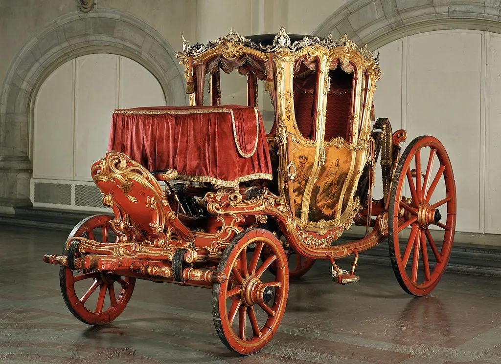 因其较为舒适的乘坐体验以及较大的运载量,coach一传入欧洲就迅速普及了开来,随着进一步的改造创新,它最终于17世纪初定型为了标准的“四柱”车厢。对于这种更加平稳安全的新型车,欧洲的王公贵族们自然也爱不释手。而为了彰显自己的地位和财富,他们在马车的装饰上也花足了心思。