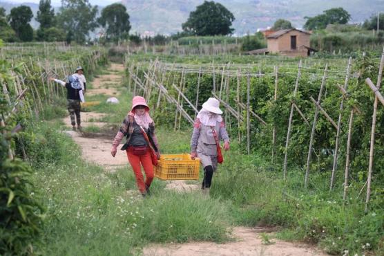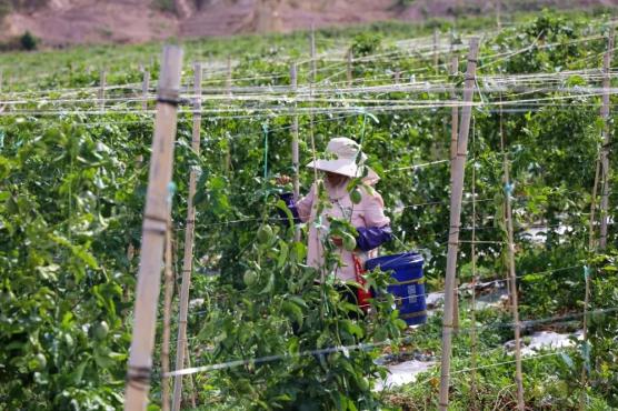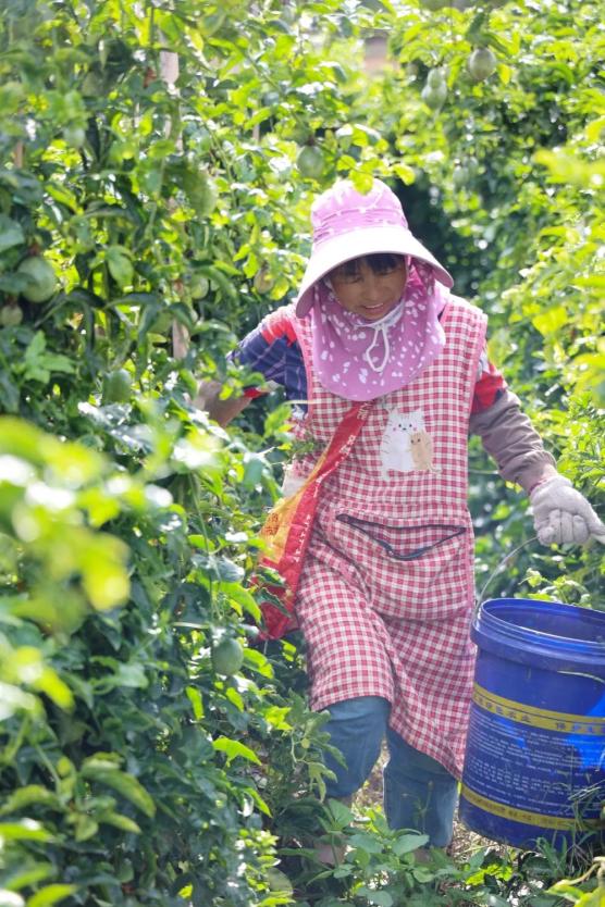 在基地干活的工人们,大多是来自附近村庄的家庭妇女,在这里做工可以根据自己的时间灵活选择按日或按小时结算工资,闲时还能照顾家里的老人、孩子。百香果种植在丰富新房村村民“果篮子”的同时,也充盈了村民的“钱袋子”。