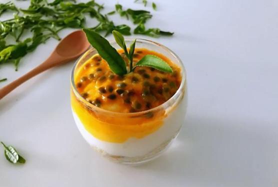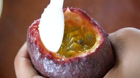无论是自己做的酸奶还是买的酸奶,加入一个百香果果肉搅拌均匀,就能获得一份新鲜的水果酸奶。04