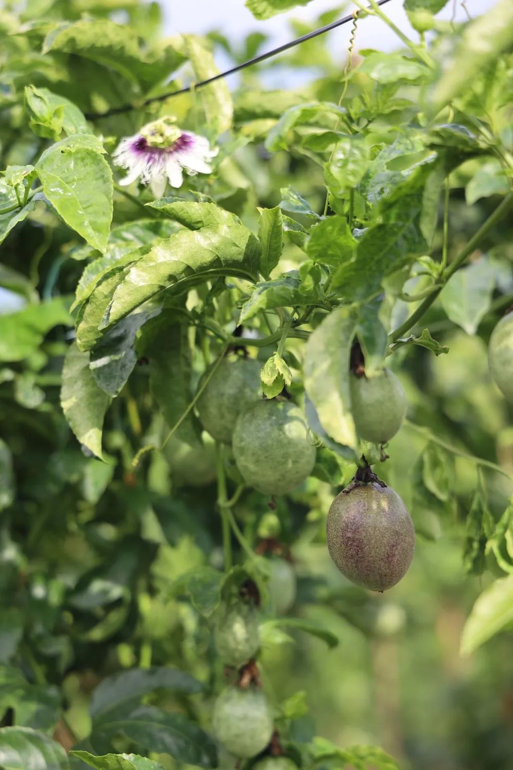 西庄镇的1000多亩百香果陆续成熟进入采摘期。阳光下的果实如小灯笼般垂满藤条,显得格外诱人。