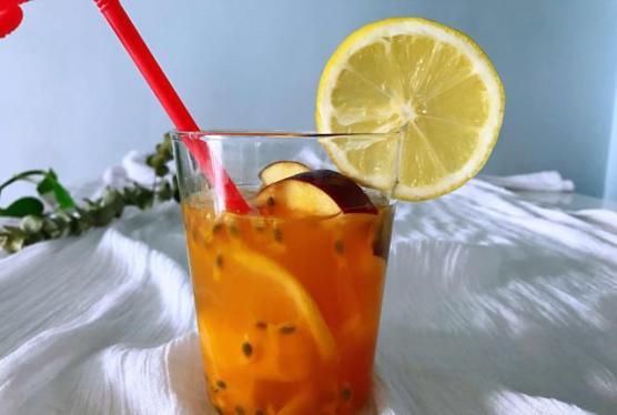 将柠檬清洗干净切成片,把百香果果肉先放入瓶底,再放上两片柠檬,加入一层蜂蜜,以此重复叠放直至瓶口装满,再放入冰箱三天之后就可冲水饮用。03