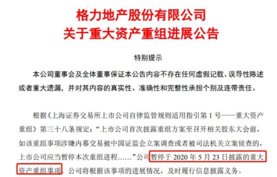 2020年5月,格力地产宣布拟122亿对价进军免税行业,以发行股份加现金支付注入珠海免税集团100%股权,但在停牌前格力地产股价已经出现放量大涨。此后,该重大资产重组事项按下暂停键,至今未重启。