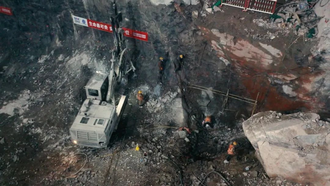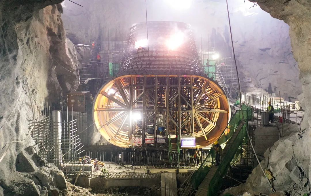 ▲ 地下主厂房施工现场此外,在施工方案上,项目部结合现场实际地质条件及时优化调整,创新采用“结构预裂先行、中间拉槽、梯段结合”的开挖方式,有效提升了施工效率。