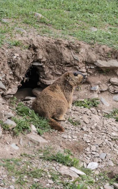 “快看,土拨鼠!”在项目右坝肩,我们发现了一只探头探脑的小精灵。这是一只喜马拉雅旱獭,毛色鲜亮、体型肥壮,大家顿时兴奋了起来。项目部宣传员林红奎是青海本地人,他非常“凡尔赛”地告诉我们,在项目部附近,金雕、玉带海雕、胡兀鹫等猛禽,和雪鸡、岩羊等高原特有野生动物随处可见。