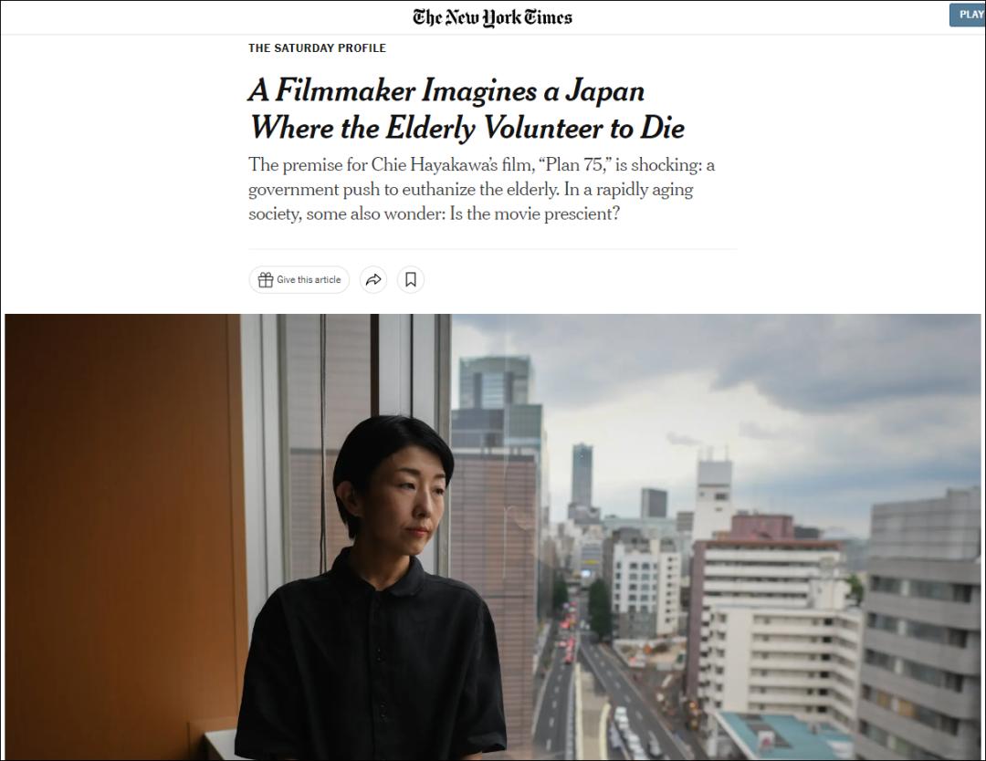 在早川千绘看来,这一结果看似令人震惊,却有力地反映了当下日本文化和人口结构。在上个月举行的戛纳电影节上,她的首部长篇电影《七五计划》(Plan 75)荣获金摄影机奖特别提及奖。